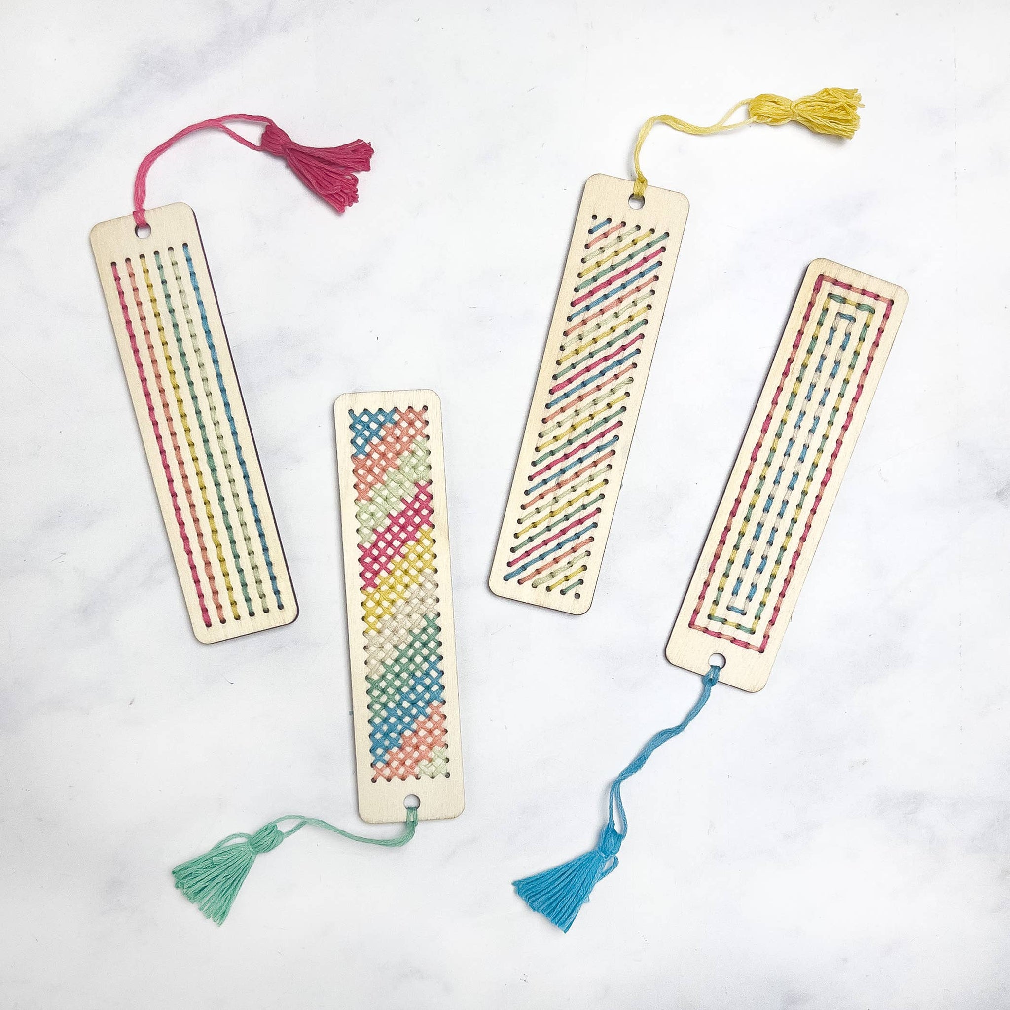 Inside each kit you'll find a sturdy wooden bookmark ready to be stitched, a pack of pastel-coloured cotton threads and a durable metal embroidery needle With these components, children can easily create a variety of intricate patterns on their bookmarks.