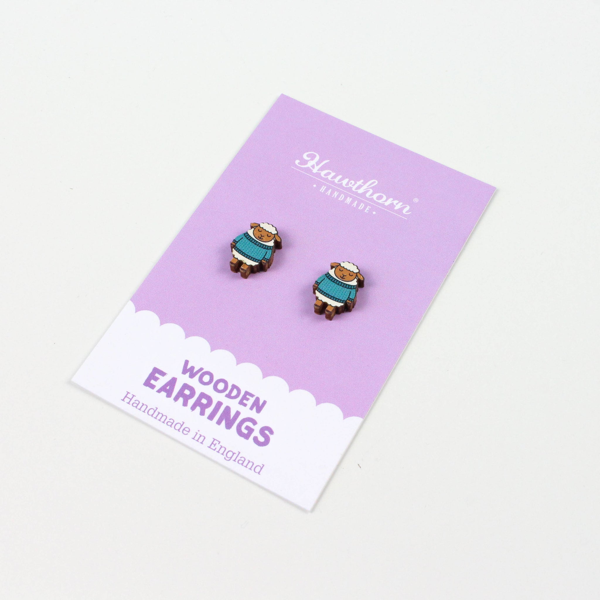 Hawthorn Handmade - Woolly Sheep Wooden Earrings